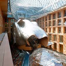 La arquitectura de Frank Gehry es otra historia. La arquitectura visceral tiene como propósito crear una reacción hacia el público. Tiene bases artísticos y creativos que buscan crear su propia historia arquitectónica al no seguir la misma base de los genios arquitectos del pasado. Frank Gehry representa este concepto con su arquitectura expresionista y con el movimiento orgánico en su gesto arquitectónico. Una de sus obras más populares, el Guggenheim museum en Bilbao, representa esta idea perfectamente (imagen #5). Él también trabajó en un proyecto similar al de Rafael Moneo donde tuvo que diseñar una sala de conferencias para el Banco DZ en Berlín (imagen #6). A diferencia de Moneo, Gehry se inspiró por los dobleces de la tela, formando una figura orgánica pareciendo casi como una cabeza de caballo. Además, su estilo se refleja en sus series de mobiliarios, con sillas y mesas que siguen una forma orgánica. Esta arquitectura no es vista comúnmente, lo cual lo destaca de los demás.